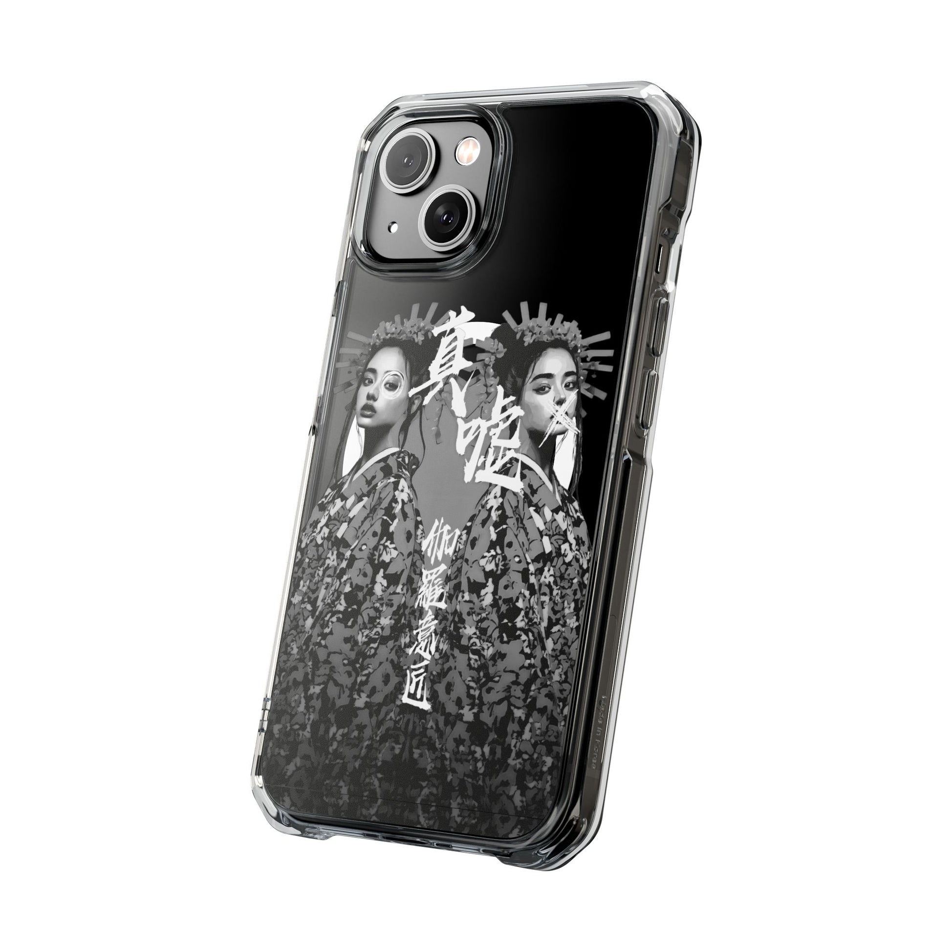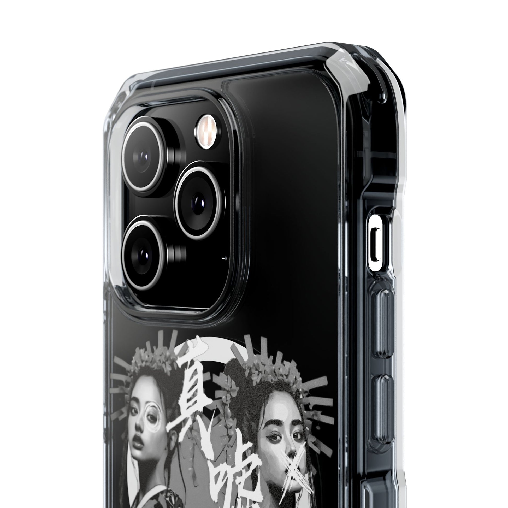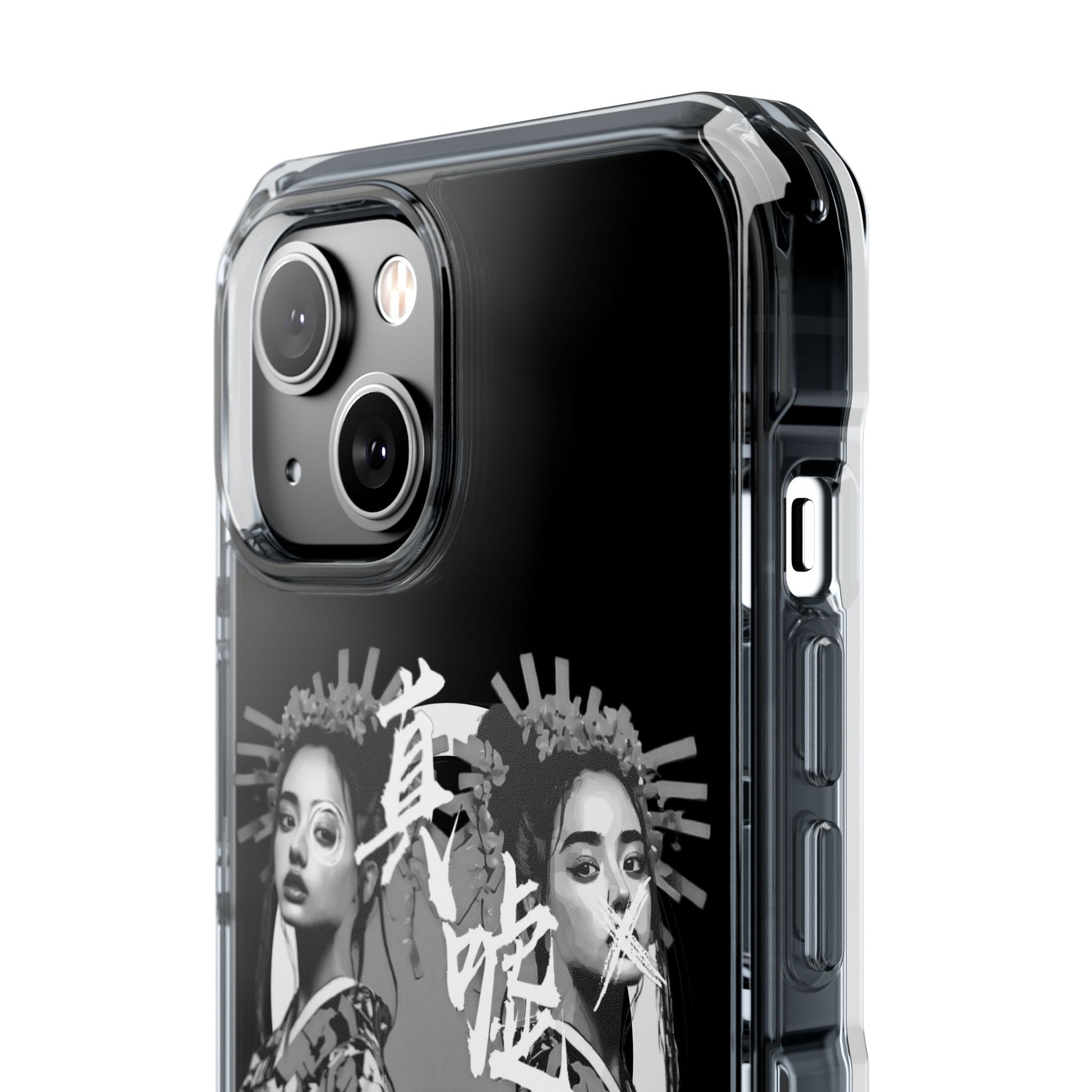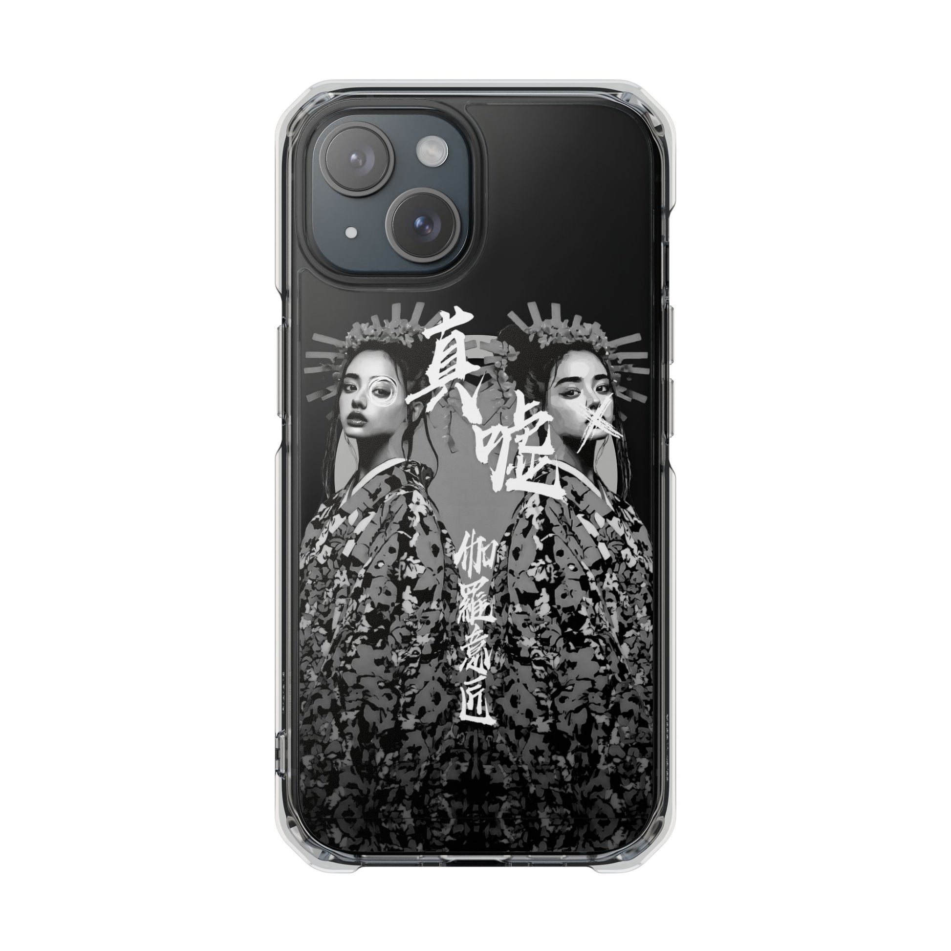 Japanese-inspired design featuring the contrast between truth and falsehood, with vibrant colors and a transparent finish. This phone case offers protection in an elegant and subtle way, with MagSafe® compatibility and air-cushioned corners. Perfect for those who appreciate unique designs and traditional Japanese aesthetics. Ideal for gifts during Japanese cultural celebrations or for tech enthusiasts who love stylish accessories.