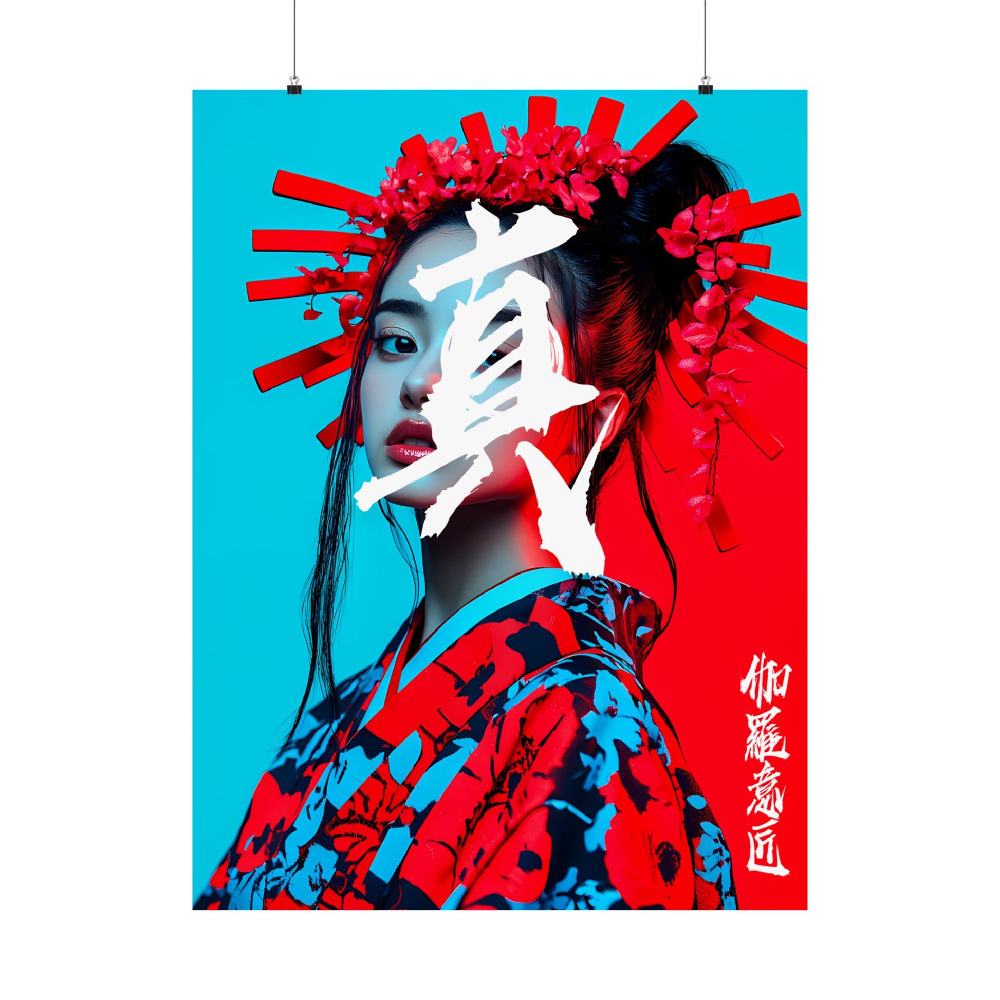 A vibrant and eye-catching poster with the Japanese phrase &"真実"meaning The eyes speak the truth. Perfect for adding a touch of sophistication and cultural flair to any room, this matte vertical poster is ideal for adults looking to decorate their living spaces with a meaningful message. Great for celebrating Japanese culture or as a thoughtful gift for fans of Japanese language and design.