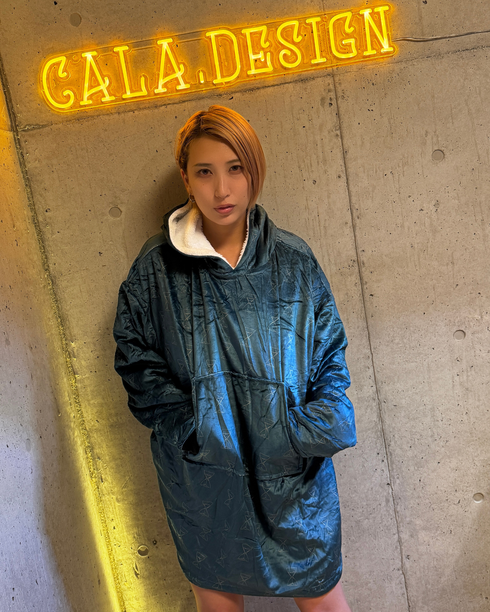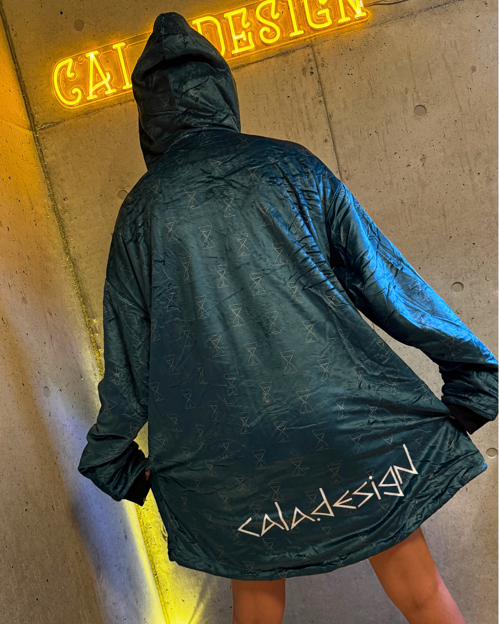 ブリティッシュグリーンのカラーは砂時計モチーフの総柄と相性が良い。